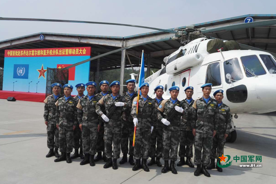 中國軍網北京5月19日電(記者羅錚、鄒菲)5月19日,由陸軍第81集團軍某陸航旅組建的中國首支維和直升機分隊在京舉行出征誓師大會。維和分隊共140人,配備4架米-171中型多用途直升機,將于近期分多個梯隊陸續(xù)前往蘇丹達爾富爾地區(qū)執(zhí)行維和任務。主要執(zhí)行空中巡邏、人員輸送、物資運輸等支援任務。誓師大會上,頭戴藍色貝雷帽、佩戴“UN”臂章的維和官兵莊嚴宣誓,表達忠實履行使命、維護世界和平的堅定決心。