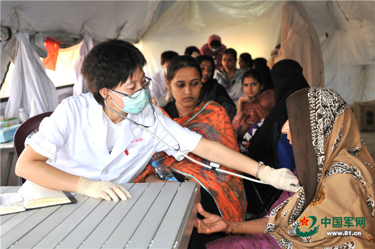 “中國流動醫(yī)院”醫(yī)療帳篷里每天都擠滿了患者。