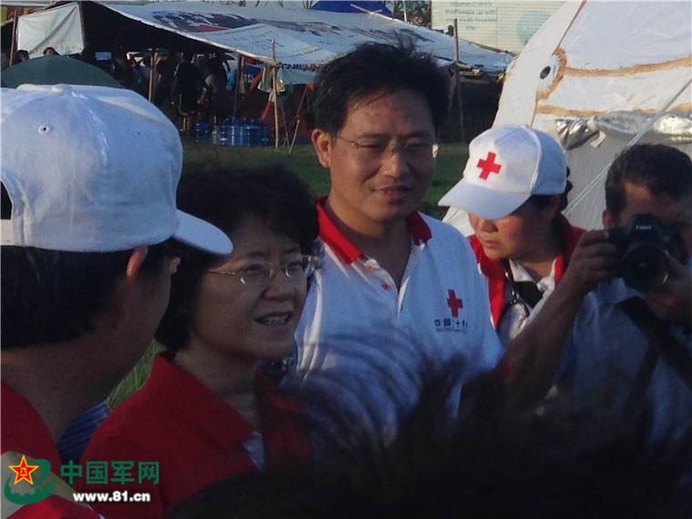 中國(guó)駐菲律賓大使馬克卿看望慰問(wèn)救援隊(duì)員。