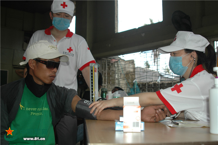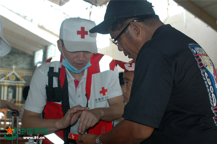 為外國(guó)救援隊(duì)員做檢查。