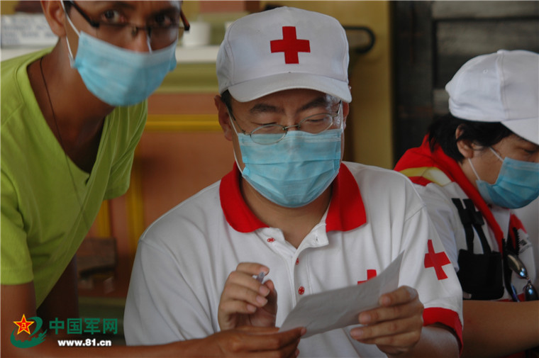 醫(yī)療隊(duì)員診治病情。