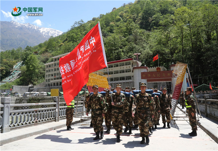 尼泊爾8.1級強(qiáng)烈地震大救援。2015年5月3日,中國武警交通救援大隊(duì)通過樟木口岸友誼大橋赴尼泊爾執(zhí)行地震救援任務(wù)。涂敦法 攝