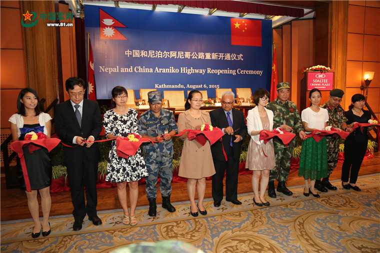 赴尼泊爾搶通阿尼哥公路。2015年8月6日,中國駐尼使館組織在尼首都加德滿都舉行阿尼哥公路重新開通儀式。涂敦法 攝