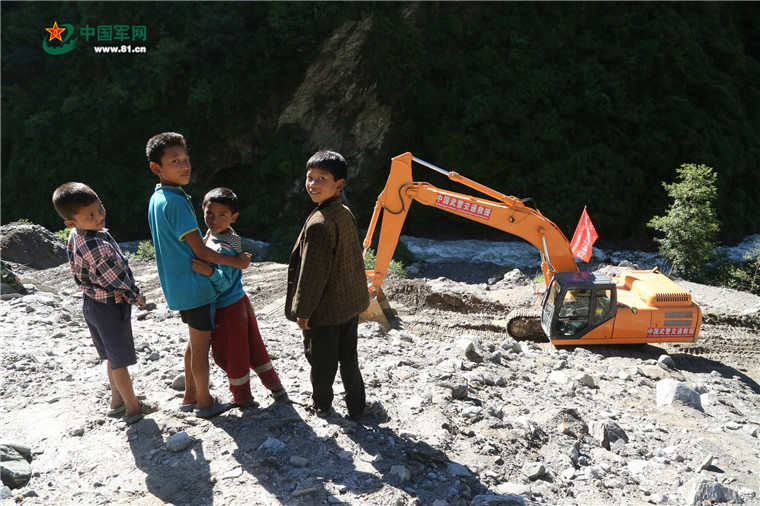 有路就有希望。2015年8月3日,尼泊爾小朋友前來觀看中國武警交通救援突擊隊(duì)搶通中尼公路,期待早日重建美好家園。涂敦法 攝