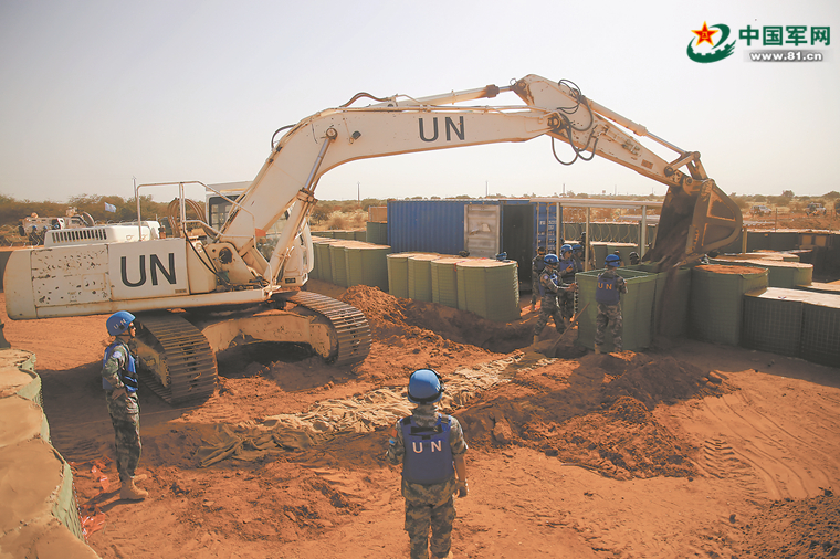 中國(guó)第7批赴馬里維和工兵分隊(duì)官兵在重新構(gòu)筑防爆沙箱。高 嵩攝