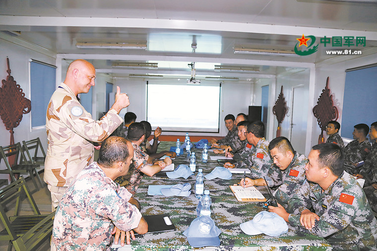 當(dāng)?shù)貢r(shí)間2018年4月12日,聯(lián)馬團(tuán)評(píng)估組負(fù)責(zé)人帕特里克·豐丁在評(píng)估總結(jié)會(huì)上伸出大拇指,對(duì)中國(guó)維和工兵在評(píng)估期間的優(yōu)異表現(xiàn)給予高度認(rèn)可。岳洪躍攝