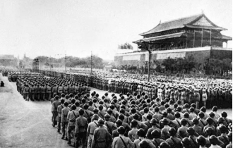 1949年3月25日,毛澤東在北京西苑機場檢閱人民解放軍部隊。