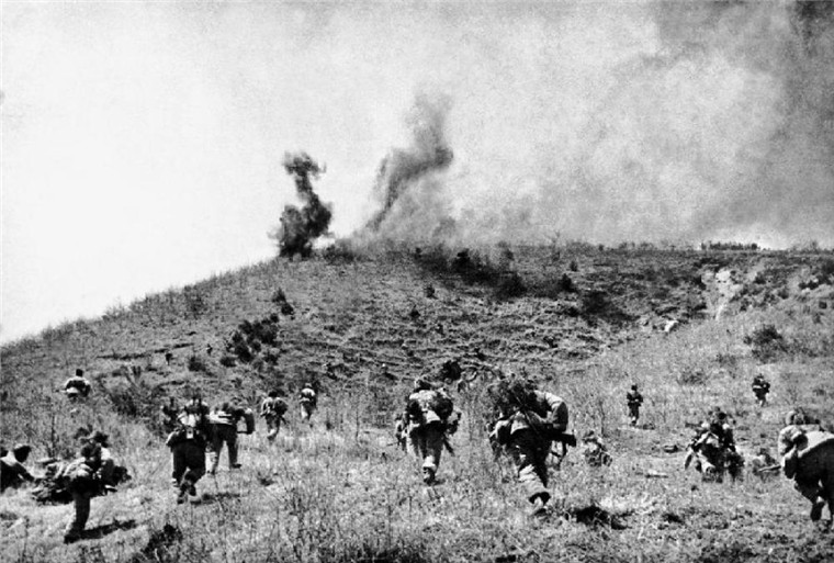 ↑1950年10月至1951年6月,中朝軍隊連續(xù)發(fā)動五次戰(zhàn)役,共殲敵23萬余人,將敵人趕回“三八”線,敵我雙方轉(zhuǎn)入戰(zhàn)略對峙。這是志愿軍某部渡過漢江后圍殲殘敵。 新華社發(fā)