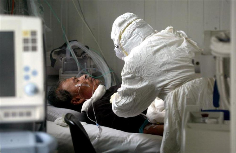 ↑2003年5月12日,小湯山醫(yī)院重癥監(jiān)護室醫(yī)護人員在搶救一名非典重癥患者。 新華社記者 王建民 攝