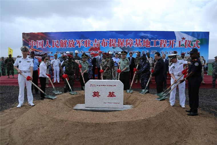 ↑中國人民解放軍駐吉布提保障基地聯(lián)合先遣組在吉布提舉辦基地建設(shè)奠基儀式(資料照片)。 新華社發(fā)