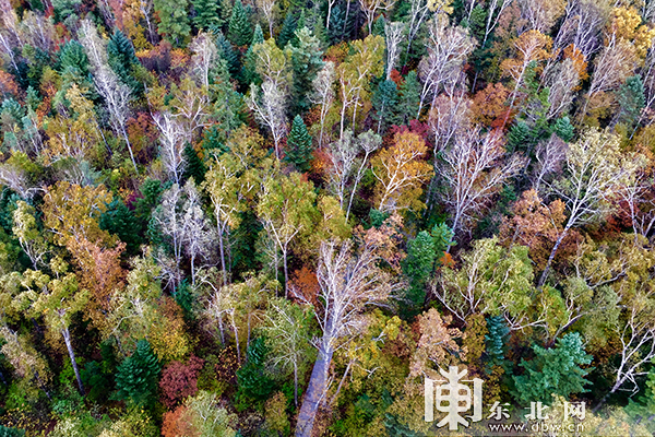 俯瞰小興安嶺五花山。東北網(wǎng)記者 霍梟涵 攝