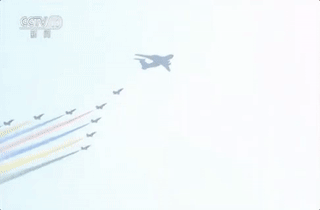 運(yùn)用直升機(jī)編組字樣、飛機(jī)噴拉彩煙、空地旗幟展示等形式,寓意在偉大、光榮、正確的中國共產(chǎn)黨堅(jiān)強(qiáng)領(lǐng)導(dǎo)下,新中國建設(shè)發(fā)展走過的70年輝煌歷程,人民軍隊(duì)現(xiàn)代化建設(shè)取得的歷史性成就。