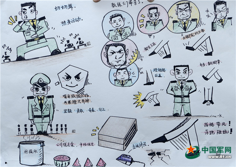 火箭軍方隊兵哥哥手繪閱兵生活點滴,畫風超萌!