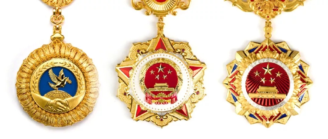 國家榮譽稱號獎章以紅色、金色為主色調(diào),章體采用五星、天安門、牡丹、旗幟、光芒等元素,章鏈采用中國結、花卉等元素,整體使用冷壓成型、花絲鑲嵌、琺瑯等工藝制作,象征國家榮譽稱號獲得者在各領域各行業(yè)作出的重大貢獻,彰顯示范引領作用,激勵全國各族人民不忘初心、牢記使命,為實現(xiàn)中華民族偉大復興的中國夢而不懈奮斗。