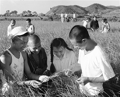 湖南省瀏陽縣大瑤人民公社沙螺大隊黨總支書記楊宏典,在領(lǐng)導群眾生產(chǎn)中,善于走群眾路線,很快就改變了這個生產(chǎn)隊的窮困面貌。這是1959年10月,楊宏典和生產(chǎn)隊的隊長們在田間總結(jié)晚稻豐產(chǎn)的經(jīng)驗。(新華社記者 王平 攝)
