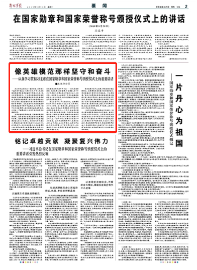 歷史將永遠(yuǎn)銘記這一重要時(shí)刻:在舉國上下喜慶新中國成立70周年之際,中華人民共和國國家勛章和國家榮譽(yù)稱號(hào)頒授儀式在人民大會(huì)堂隆重舉行。這是我國首次開展國家勛章和國家榮譽(yù)稱號(hào)集中評(píng)選頒授,充分體現(xiàn)了黨中央對(duì)功勛模范人物的高度重視和真情關(guān)愛,必將進(jìn)一步凝聚起同心共筑中國夢(mèng)強(qiáng)軍夢(mèng)的磅礴力量。