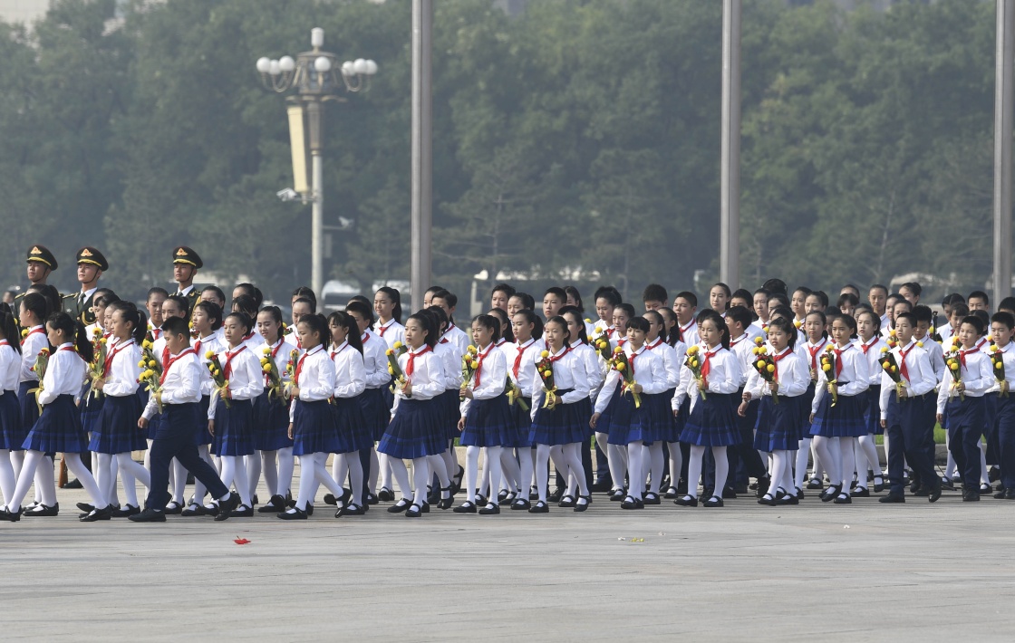 9月30日,烈士紀(jì)念日向人民英雄敬獻(xiàn)花籃儀式在北京天安門廣場隆重舉行。新華社記者 殷博古 攝