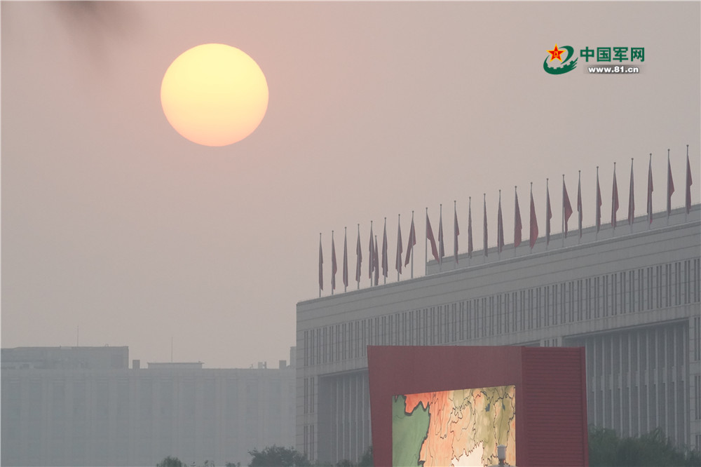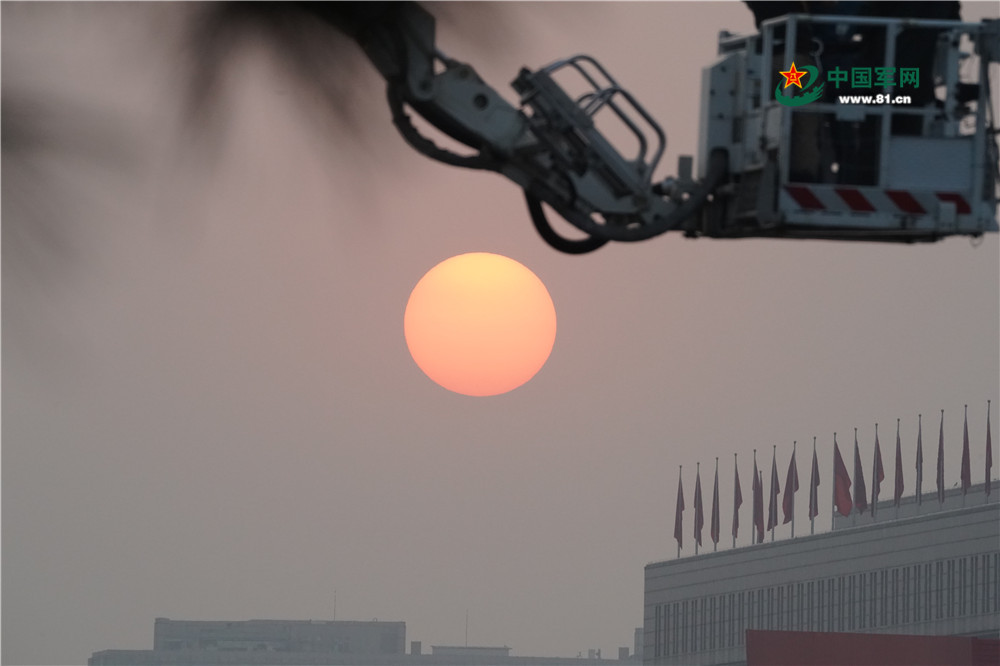 太陽從十里長安街冉冉升起,舉世矚目的新中國成立70周年閱兵式正在向我們走來! (中國軍網(wǎng)記者 宋明亮 攝)