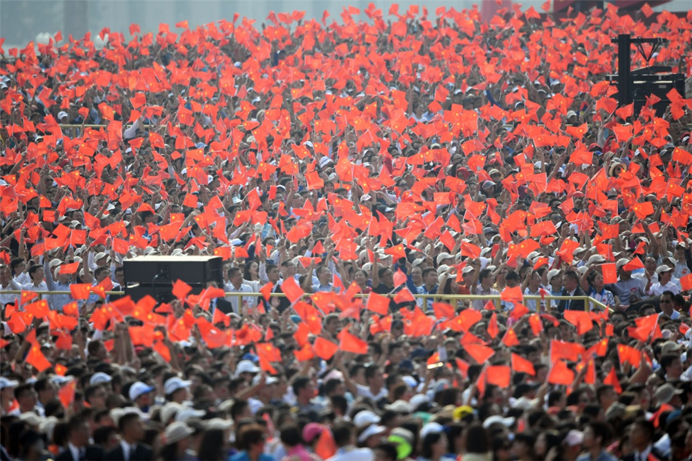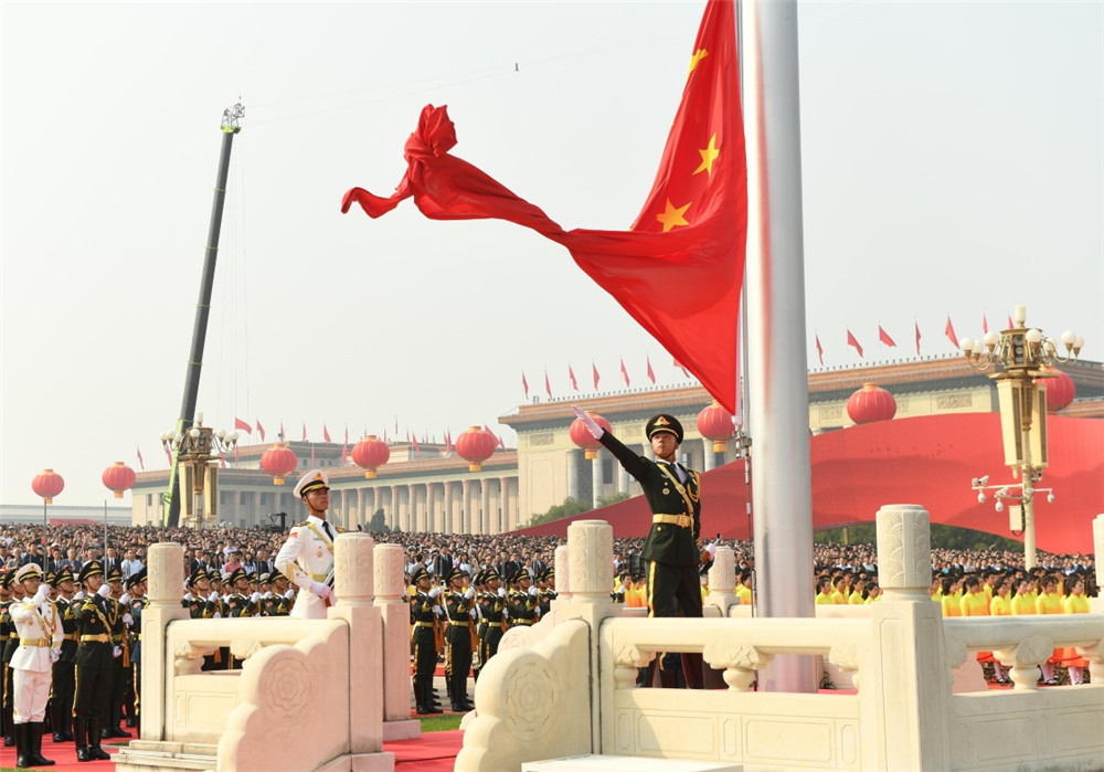 10月1日上午,慶祝中華人民共和國(guó)成立70周年大會(huì)在北京天安門廣場(chǎng)隆重舉行。這是升國(guó)旗儀式。新華社記者 李賀 攝