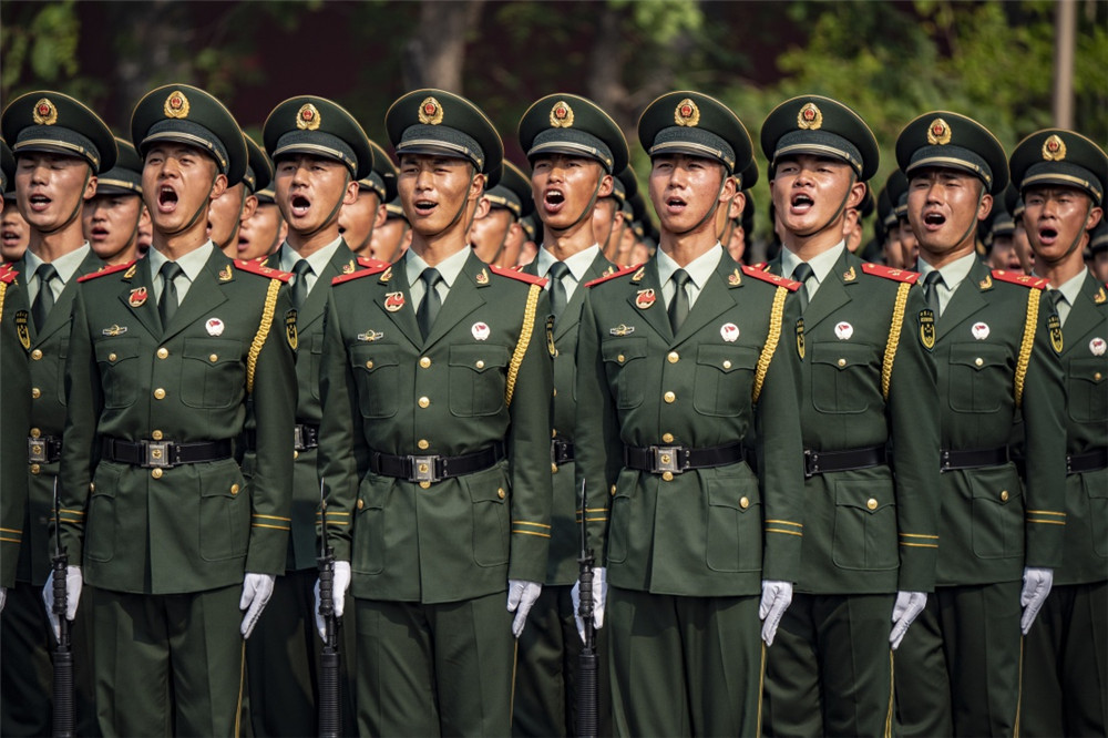 10月1日上午,慶祝中華人民共和國(guó)成立70周年大會(huì)在北京天安門廣場(chǎng)隆重舉行。這是受閱部隊(duì)官兵在慶祝大會(huì)上唱國(guó)歌。新華社記者江文耀攝