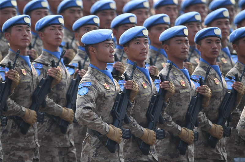 10月1日上午,慶祝中華人民共和國成立70周年大會在北京天安門廣場隆重舉行。這是受閱的維和部隊方隊。