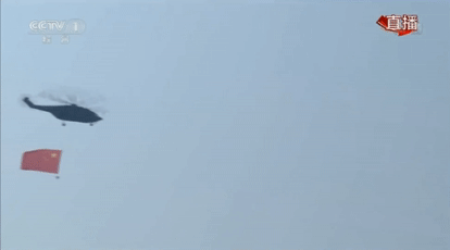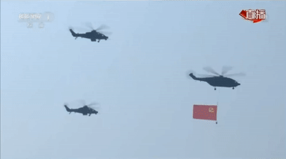 空中護旗梯隊護衛(wèi)著中國共產(chǎn)黨黨旗、中華人民共和國國旗、中國人民解放軍軍旗,飛過天安門廣場上空,這畫面簡直燃爆了啦!