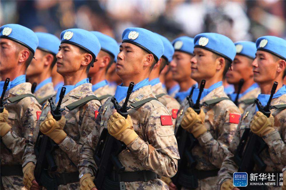 這是行進(jìn)中的維和部隊(duì)方隊(duì)。新華社記者 任瓏 攝