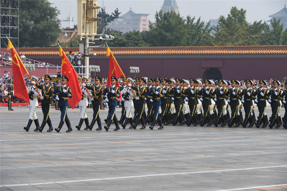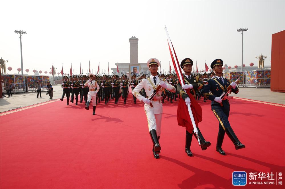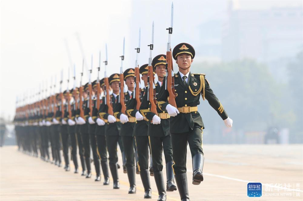 這是行進(jìn)中的儀仗方隊(duì)。新華社記者 任瓏 攝