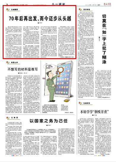 列寧曾說:“慶祝偉大革命的紀念日,最好的辦法是把注意力集中在還沒有完成的革命任務(wù)上。”70年后再出發(fā),而今邁步從頭越。不論昨天我們經(jīng)歷過多少磨難,取得過多少成就,都是為了開啟一個更加美好的明天。站在新的歷史起點上,我們自豪而不自滿,自信而不自矜,永不懈怠、勇毅向前,終將順利抵達強國強軍的夢想彼岸。