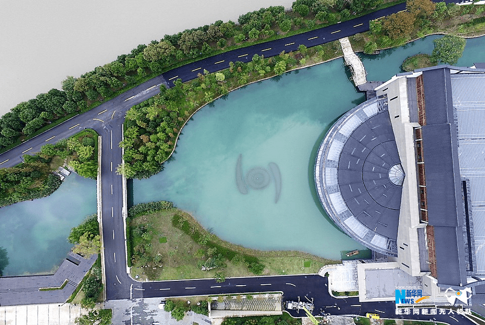 烏鎮(zhèn)互聯(lián)網(wǎng)國際會展中心二期工程,強(qiáng)化烏鎮(zhèn)旅游會議及展覽接待能力。新華網(wǎng) 毛嘉煒攝