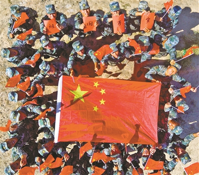陸軍第77集團(tuán)軍官兵在不同地域,同唱《我和我的祖國(guó)》,用一場(chǎng)場(chǎng)激蕩人心的軍營(yíng)“快閃”向祖國(guó)告白——“我愛(ài)你,中國(guó)”。上圖為巡邏間隙,該集團(tuán)軍“猛虎旅”官兵唱響《我和我的祖國(guó)》,與國(guó)旗合影,表達(dá)對(duì)祖國(guó)的忠誠(chéng)與熱愛(ài)。