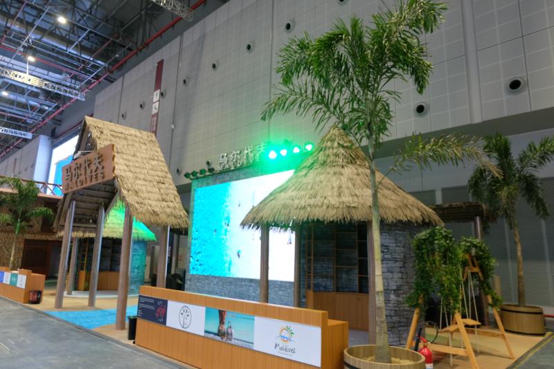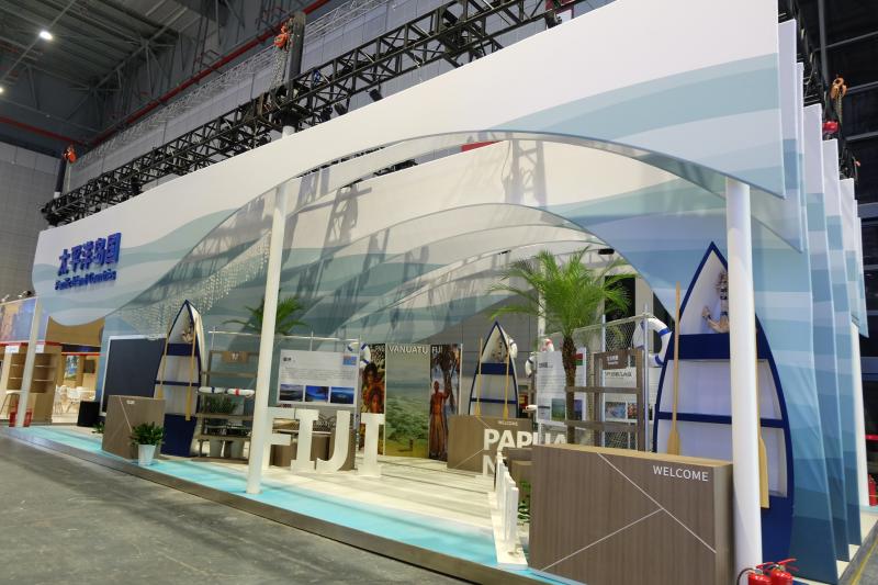 馬爾代夫展臺(tái)就像是一個(gè)坐擁私人海灘的度假村;厄瓜多爾也把“海鷗”和“椰林”帶到了展館;斐濟(jì)、瓦努阿圖、巴布亞新幾內(nèi)亞聯(lián)合展臺(tái)——太平洋島國(guó)展臺(tái)更是一展海島風(fēng)情,以藍(lán)色海洋為設(shè)計(jì)靈感,寓意著“21世紀(jì)海上絲綢之路”。揚(yáng)起的風(fēng)帆與海水的浪涌相結(jié)合,代表了開(kāi)放的海洋文明與東西方文化的融合,展館內(nèi)部則對(duì)各島嶼的不同文化進(jìn)行了多樣性的展現(xiàn)。