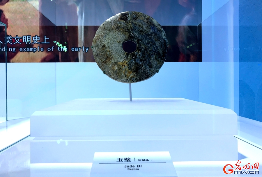 當(dāng)5000多年的良渚文化,與開放的進(jìn)博會(huì)大舞臺(tái)相遇,會(huì)出現(xiàn)什么樣的火花?在中國館內(nèi),良渚文化展項(xiàng)是重要內(nèi)容之一。良渚文化展項(xiàng)位于進(jìn)博會(huì)中國館美麗中國區(qū)域。整個(gè)展區(qū)布局呈“L”型,實(shí)際利用空間為4米(長)×4米(寬)×3.5米(展墻高度)。在“L”型地面空間上,以“展臺(tái)+玻璃罩”的形式,展示了琮、璧、鉞仿制玉器。