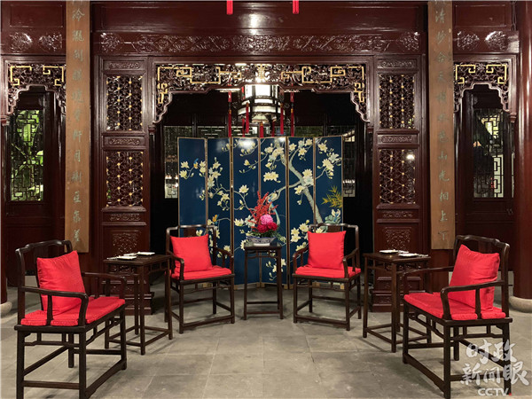 △豫園是江南古典園林,始建于明代。這是當(dāng)晚兩國(guó)元首夫婦落座的玉華堂。(央視記者石丞拍攝)