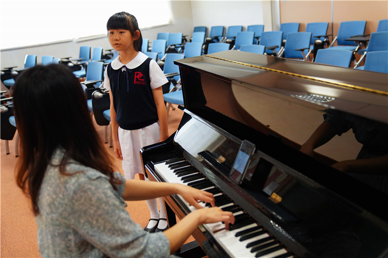 圖為龍紫嵐在音樂老師的伴奏下練習(xí)唱歌。 中新社記者 崔楠 攝