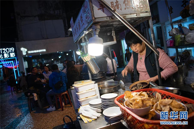 在澳門最繁華的歷史街區(qū)新馬路附近,匯集了很多中西美食。中式早餐生滾粥、澳門特色小吃牛雜、古早小吃金錢餅和雞蛋仔、冬日限定美食羊腩煲……舌尖上的澳門,讓人們紛紛慕“食”而來。新華社記者 張金加 攝
