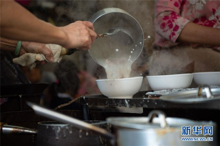 11月19日,在位于澳門草堆街女媧廟前的“雄記生滾粥”,員工在煮粥。這里是當?shù)鼐用裣矚g光顧的一家早餐店,粵式及第粥、艇仔粥、牛肉豬潤粥、瘦肉皮蛋粥等即點即煮,亦可另加豬紅,鮮味十足。 新華社記者 張金加 攝