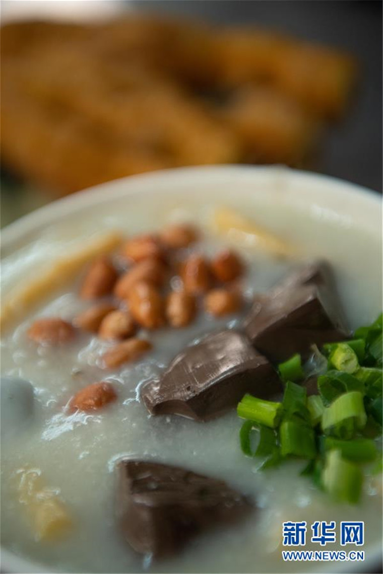 澳門“雄記生滾粥”的艇仔粥(11月19日攝)。位于澳門草堆街女媧廟前的“雄記生滾粥”是當?shù)鼐用裣矚g光顧的一家早餐店,粵式及第粥、艇仔粥、牛肉豬潤粥、瘦肉皮蛋粥等即點即煮,亦可另加豬紅,鮮味十足。 新華社記者 張金加 攝