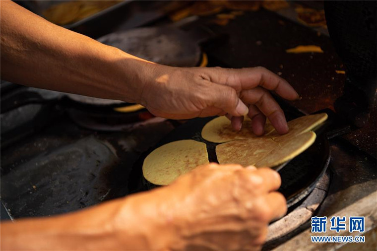 11月18日,在位于澳門新馬路的古早小食“潘榮記”,員工制作金錢餅。“潘榮記”金錢餅在澳門已有70多年歷史,這家車仔檔幾乎每天都排長龍,老板售完即止。金錢餅的制作材料非常簡單,只有雞蛋、面粉、牛油和糖,剛烤好的金錢餅金燦燦的,入口即化、回味無窮。 新華社記者 張金加 攝