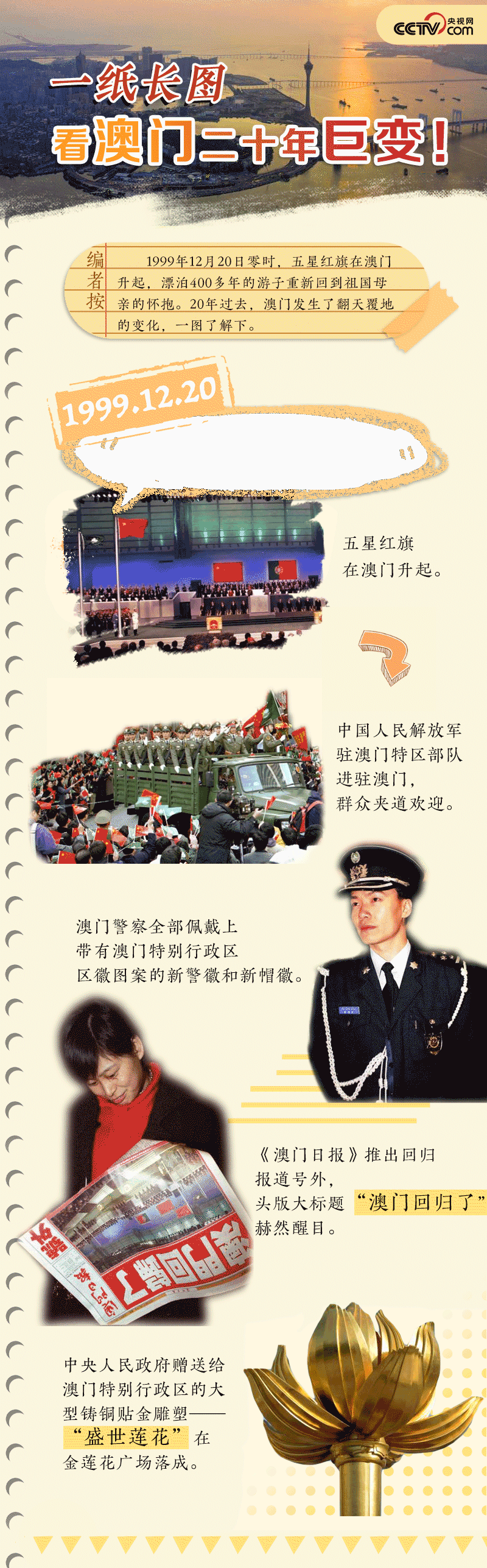 央視網(wǎng)消息:時光飛逝,澳門回歸祖國已二十載。