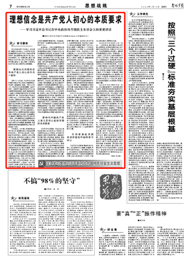 在中央政治局“不忘初心、牢記使命”專(zhuān)題民主生活會(huì)上,習(xí)近平總書(shū)記在強(qiáng)調(diào)理想信念是共產(chǎn)黨人的政治靈魂的同時(shí),指出理想信念是共產(chǎn)黨人初心的本質(zhì)要求。這一創(chuàng)新論斷,揭示了理想信念與共產(chǎn)黨人初心的內(nèi)在聯(lián)系。我們要認(rèn)真學(xué)習(xí)、悉心領(lǐng)悟,不斷深化對(duì)共產(chǎn)黨人初心使命的認(rèn)識(shí)和理解。請(qǐng)關(guān)注今日《解放軍報(bào)》的報(bào)道——