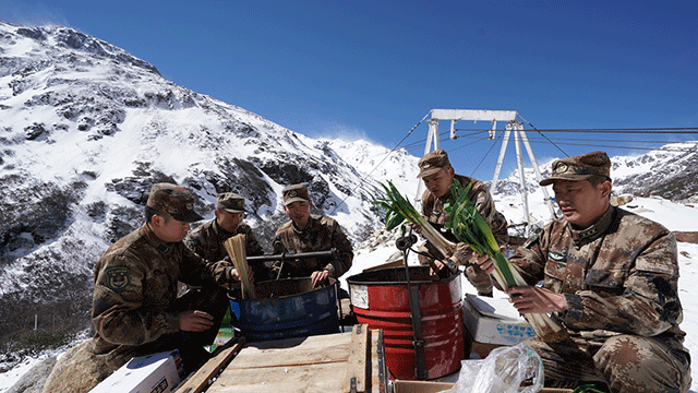 圖⑤:維護(hù)索道。 海拔4687米的西藏軍區(qū)卓拉哨所位于陡峭的山壁之上,被稱作“掛在天上的哨所”。哨所