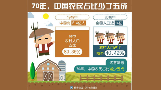 70年,中國農(nóng)民占比少了五成2019-09-04 10:42