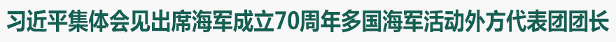 國家主席、中央軍委主席習(xí)近平23日上午在青島集體會見了應(yīng)邀出席中國人民解放軍海軍成立70周年多國海軍活動的外方代表團團長。中國海軍成立70周年多國海軍活動開幕式舉行2019-04-23 08:19
