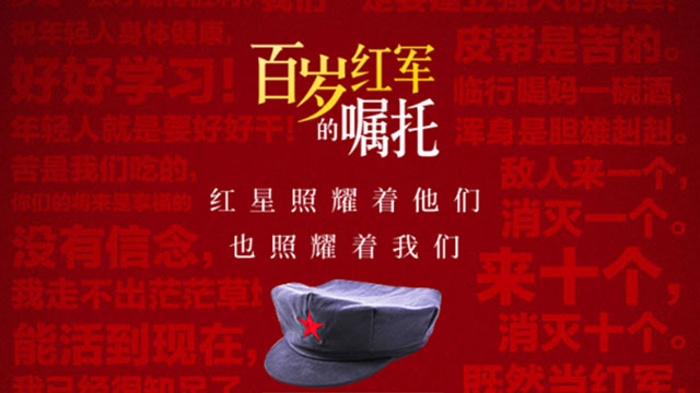 2019年是新中國成立70周年,紅軍長征出發(fā)85周年。為大力弘揚偉大的長征精神,追尋革命先輩足跡,中國軍網(wǎng)聯(lián)合騰訊新聞推出《百歲紅軍的囑托》大型系列報道,以全新的視角再現(xiàn)歷史,找尋紅色印記,傳承紅色血脈。健在的紅軍老戰(zhàn)士,歲數(shù)均在百歲左右,他們曾經(jīng)一次次歷盡艱難險阻,勇往直前;一次次突破生死絕境,涅槃重生。他們作為世紀(jì)風(fēng)云的親歷者、見證者,崢嶸歲月里流動著無數(shù)英烈的革命熱血,深藏著一支軍隊的傳奇歷史,見證著一個國家的復(fù)興壯大。每一個老紅軍都是從坎坷中走來,經(jīng)歷過戰(zhàn)爭的洗禮,他們爬過雪山走過草地,穿越戰(zhàn)火與硝煙,前仆后繼,向著勝利的光芒一往無前。歷史因銘記而永恒,精神因傳承而不滅。今天,讓我們走近他們,聚焦他們的面孔,探尋他們的精神世界。今朝國家繁榮富強(qiáng),正是無數(shù)英雄前輩賜予我們這代人的一份厚禮,我們自當(dāng)牢記英雄囑托,接過紅色火炬,將青春韶華奉獻(xiàn)給偉大的祖國。