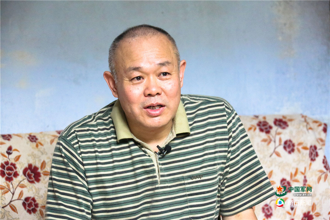顧昌華接受采訪時說起了長征時期過草地吃皮帶的事,他說皮帶吃起來味道是苦的。中國軍網(wǎng)記者 孫智英 攝(2019年8月15日攝)