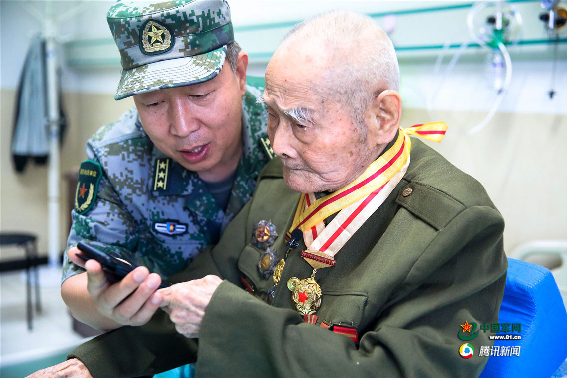 簡單的交談后,干休所干事播放起了顧老熟悉的旋律:“我們都是神槍手,每一個子彈消滅一個敵人,我們都是飛行軍,哪怕那山高水又深……”老人的眼眶濕潤了,久久未語,思緒似乎回到了那個戰(zhàn)火紛飛的年代——