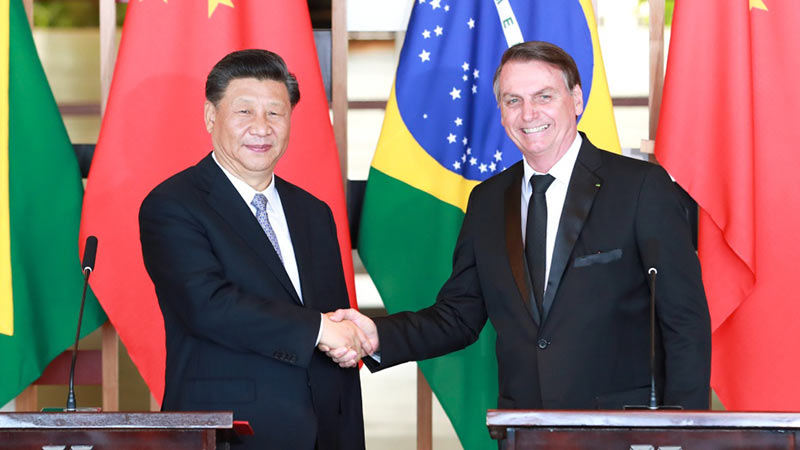 當(dāng)?shù)貢r間11月13日,國家主席習(xí)近平在巴西利亞同巴西總統(tǒng)博索納羅會談。