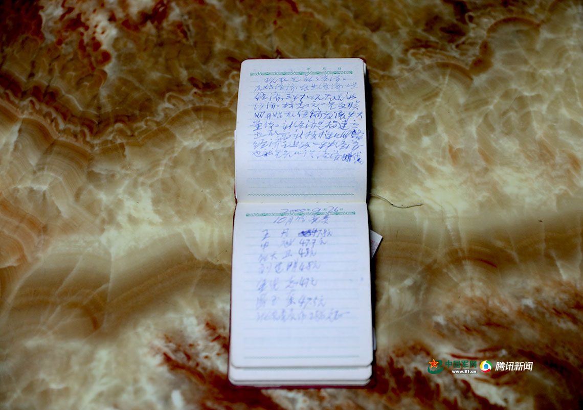 當(dāng)我們走進(jìn)老紅軍鳳玉奎的家里,一張帶著明顯“部隊(duì)特色”的茶幾擺在客廳中間:桌面一塵不染,臺(tái)歷、眼鏡、筆、遙控器依次整齊擺放,記者翻動(dòng)臺(tái)歷,發(fā)現(xiàn)每一張臺(tái)歷紙上都留有老人的“筆記”,“我父親特別喜歡記一些東西,現(xiàn)在老了也會(huì)寫(xiě)寫(xiě)劃劃。”說(shuō)著老人的兒子鳳天國(guó)將舊筆記本找出給記者看。斑駁的紙面上,記著一項(xiàng)項(xiàng)會(huì)議記錄、一條條黨費(fèi)繳納情況,這些字跡將我們的思緒帶回到了那段激情燃燒的歲月。