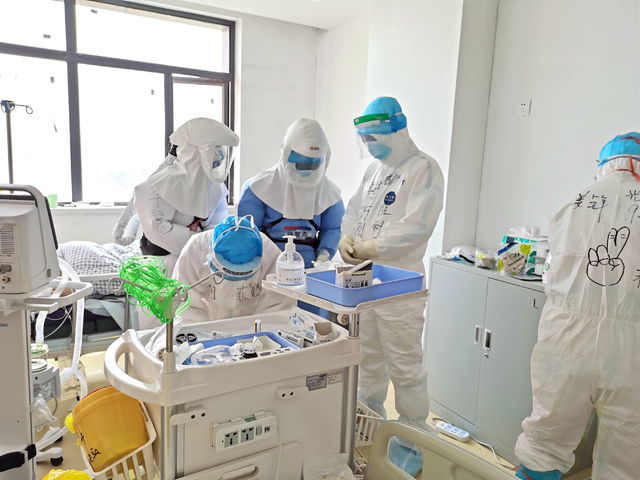 穿上厚重的防護服,戴上正壓頭罩,已是渾身濕透的李慧屏住呼吸,找準時機專注操作。終于,導管順利置入患者氣道!看著監(jiān)護儀上變化的數(shù)據(jù),大家長舒口氣,“總算穩(wěn)住了!”
